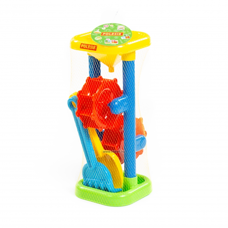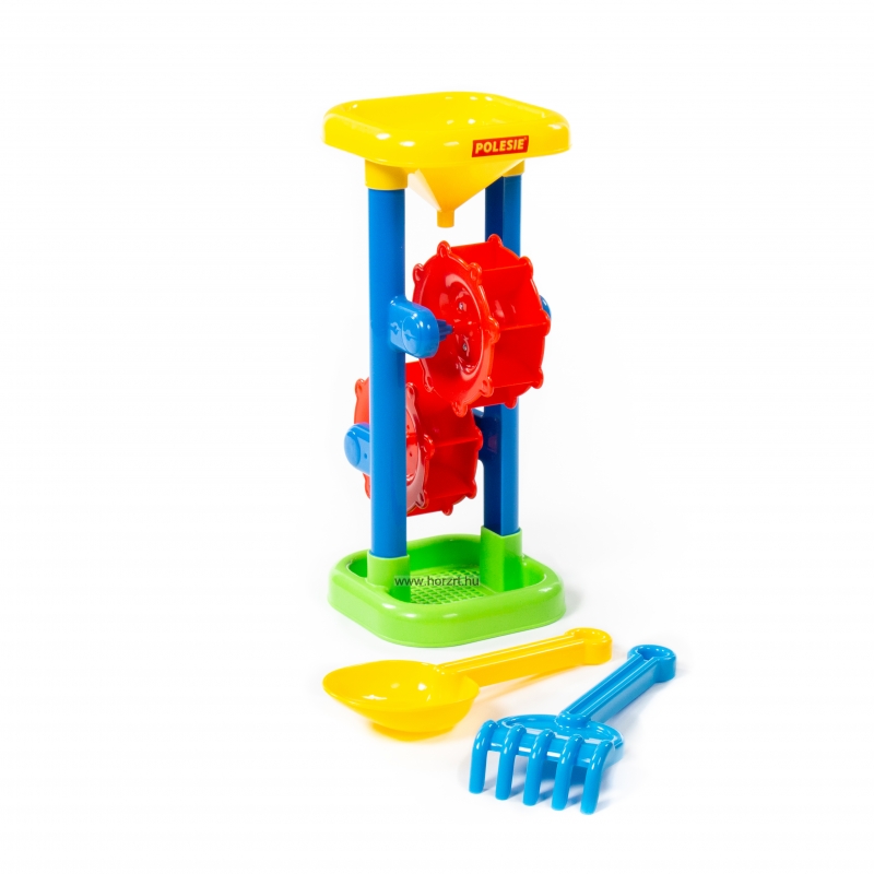 Ha homokot vagy vizet töltünk a tölcsérbe, a színes malomkerék pörgő táncba kezd, azonnal magára vonva a gyerekek figyelmét. A hozzá tartozó ergonomikus lapát és gereblye kifejezetten kis kezekhez készült, így már 12 hónapos kortól játékosan fejleszti a finommotorikát és a szem-kéz koordinációt. A könnyű, mégis strapabíró, lekerekített élű műanyag biztonságos szórakozást garantál, a 31 cm-es magasság pedig ideálissá teszi homokozóba, strandra vagy a kertbe. A szellős hálós csomagolásnak köszönhetően a szett kis helyet foglal, így minden nyári kalandra egyszerűen magatokkal vihetitek.
