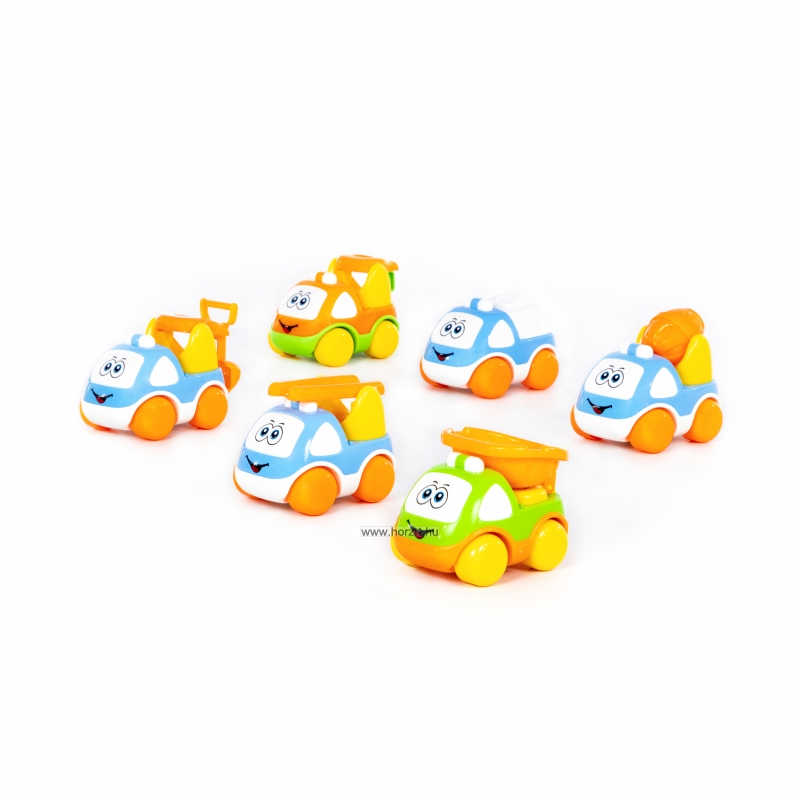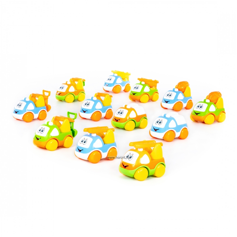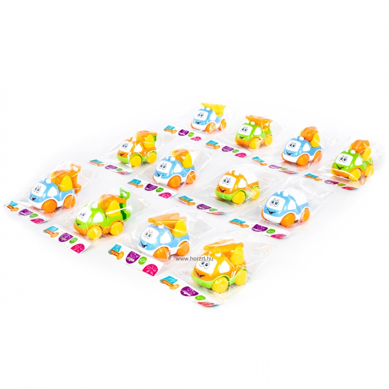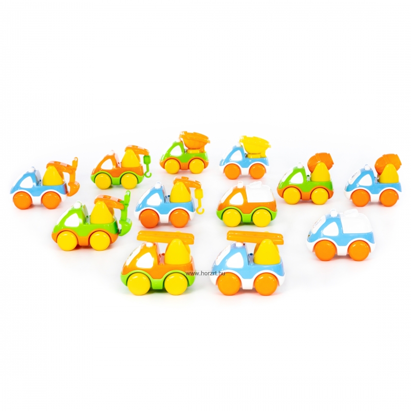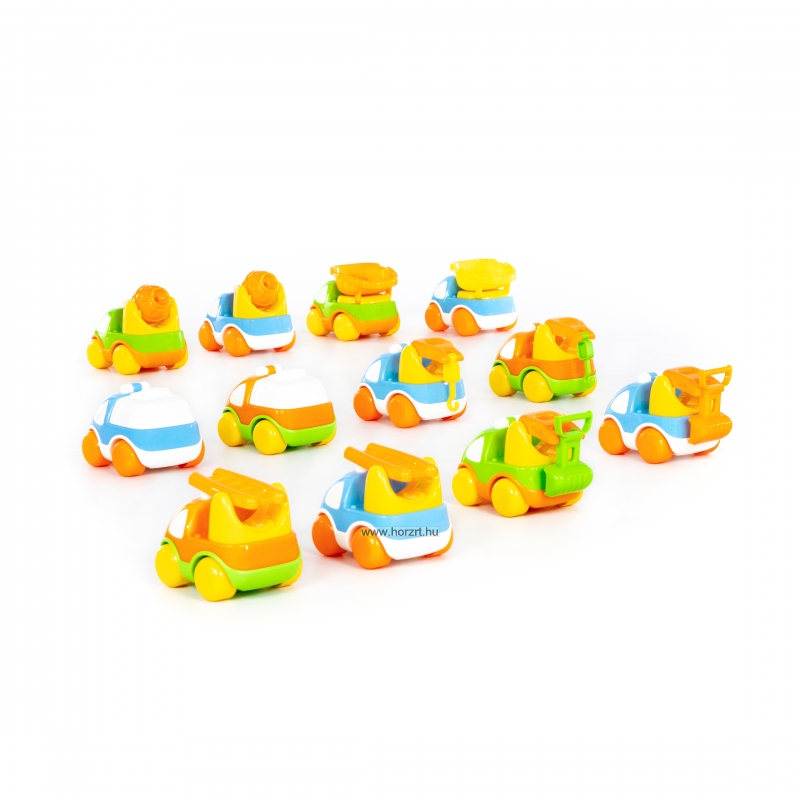 A készlet 20 darab egyszerű, könnyen gurítható kisautót tartalmaz, amelyeket már a legkisebbek is biztonsággal használhatnak, miközben játék közben fejlesztik készségeiket, képességeiket.