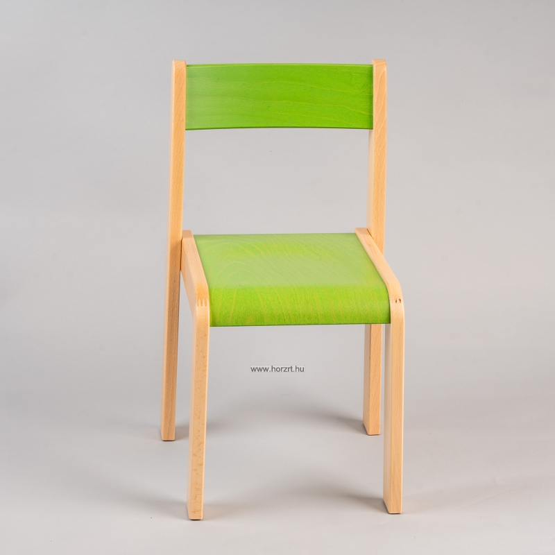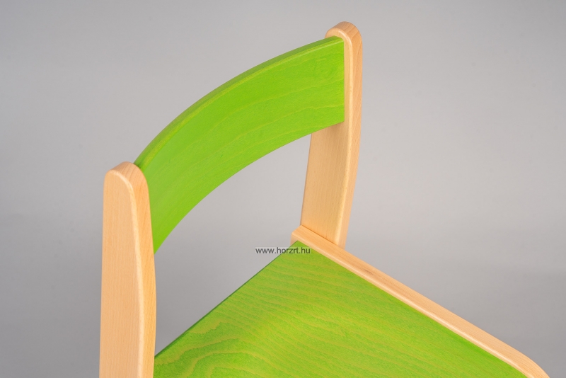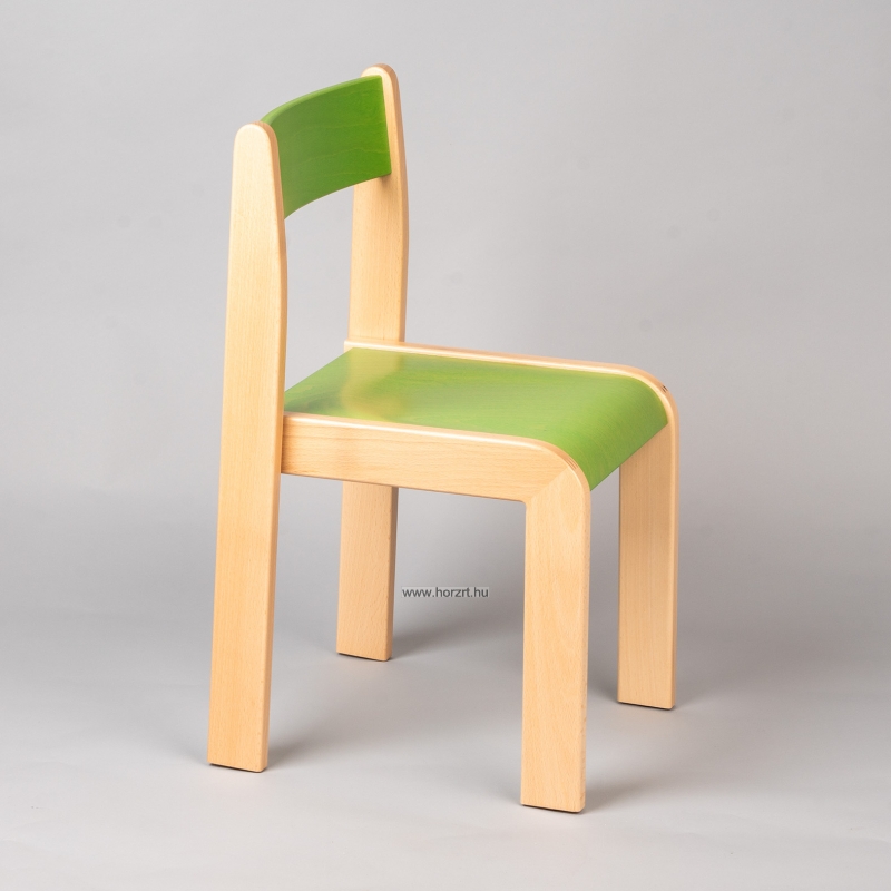 Mélyített ülése és íves háttámlája biztosítja a gyermekek helyes testtartását, egészséges fejlődését. Az ülés és háttámla rétegelt lemezből, a szék szerkezete bükkfából készül, vízbázisú, környezet- és gyermekbarát lakkal kezelve. A lábak alját műanyag csúszásgátlóval láttuk el.