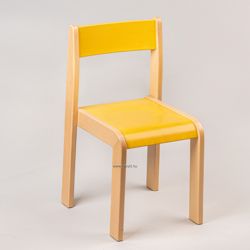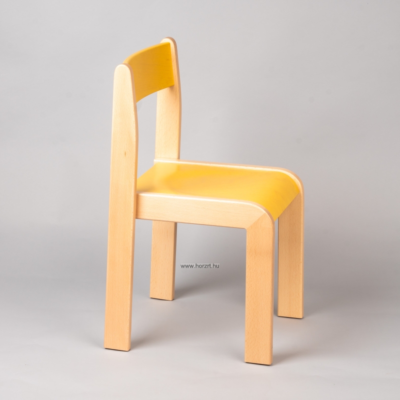 Lili szék, ovis méret, 34 cm magas, pácolt sárga támlával és ülőkével, rakásolható