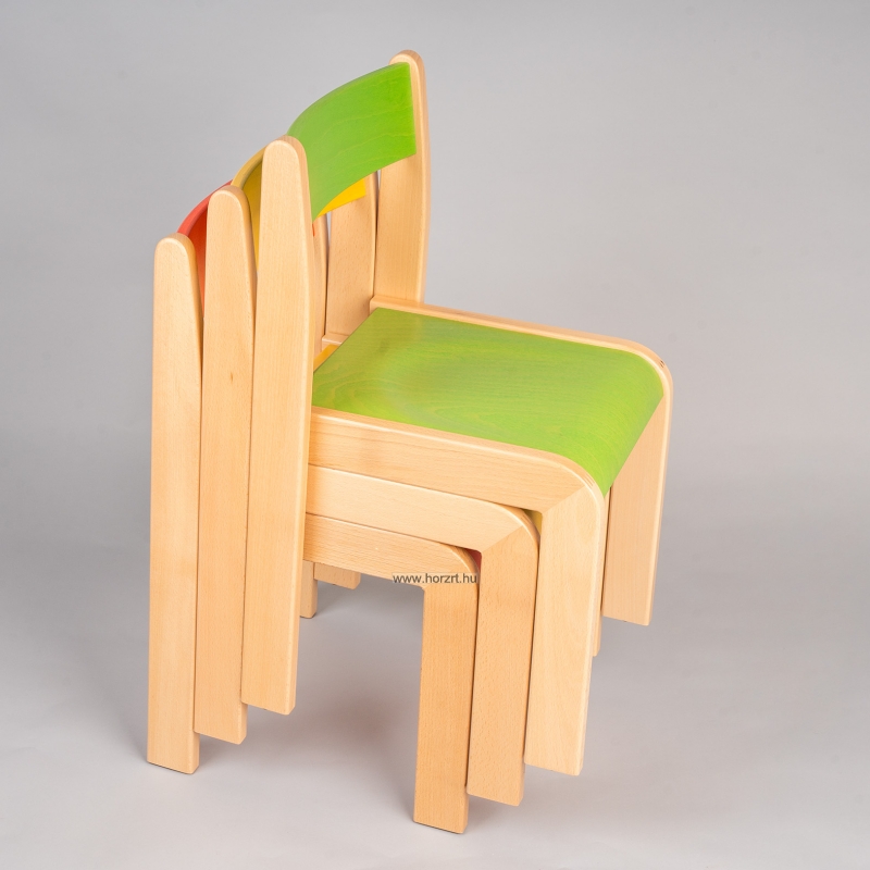Mélyített ülése és íves háttámlája biztosítja a gyermekek helyes testtartását, egészséges fejlődését. Az ülés és háttámla rétegelt lemezből, a szék szerkezete bükkfából készül, vízbázisú, környezet- és gyermekbarát lakkal kezelve. A lábak alját műanyag csúszásgátlóval láttuk el.