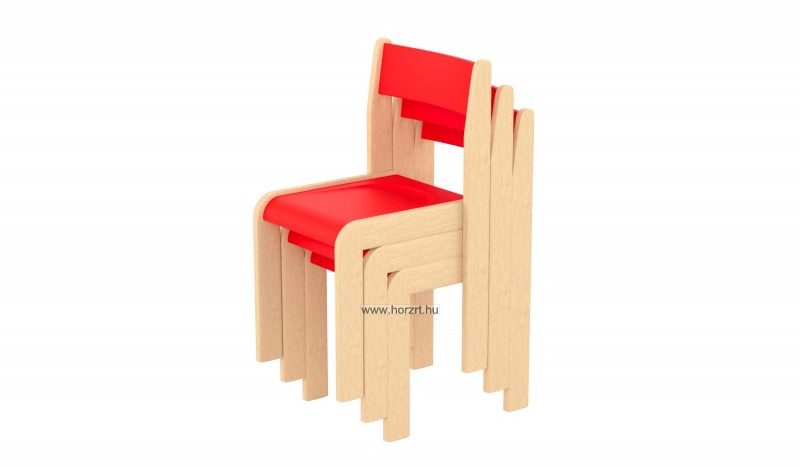 Lili szék, ovis méret, 34 cm magas, piros támlával és ülőkével, rakásolható