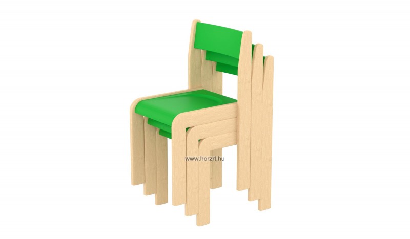 Lili szék, ovis méret, 34 cm magas, zöld támlával és ülőkével, rakásolható