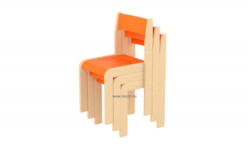 Lili szék, ovis méret, 30 cm magas, narancs támlával és ülőkével, rakásolható